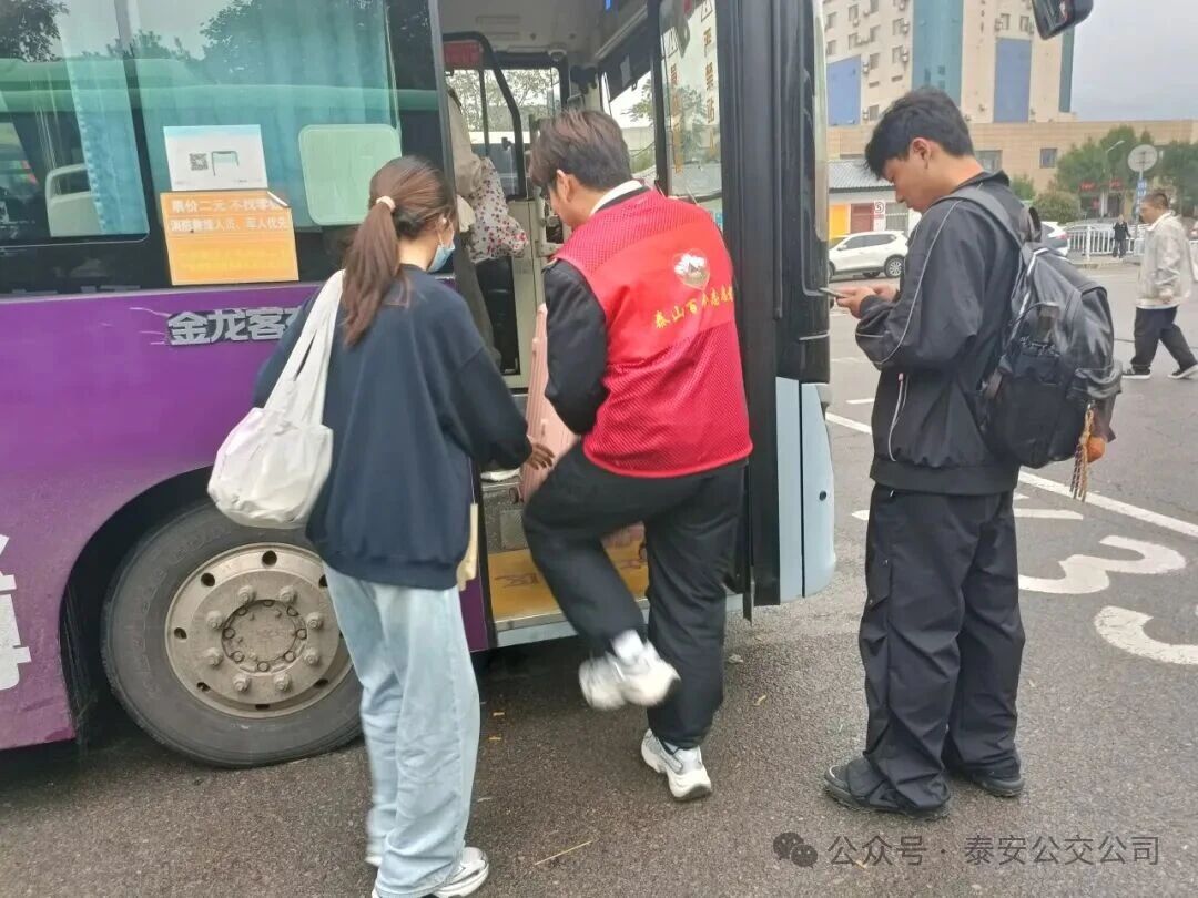 10月8日,隨著國慶、中秋“雙節(jié)”假期步入尾聲,泰城東部的泰山科技學院、泰山職業(yè)學院、山東服裝學院等高校迎來大學生集中返校高峰。為切實讓學子們安全、快捷返校,泰安公交第三分公司在假期前學生離校保障基礎(chǔ)上,持續(xù)發(fā)力,以“直通車”服務(wù)護航學子平安返校。